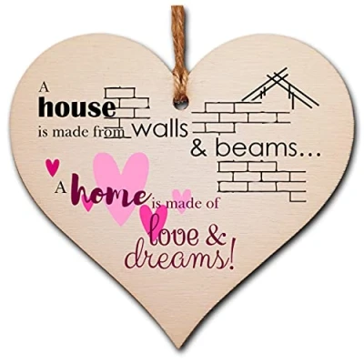 The Plum Penguin Handmade Wooden Hanging Heart Plaque Gift House Walls Home Love Dreams Inspirational Wall Hanger Card Alternative Friendship Family