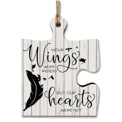 The Plum Penguin Hanging Jigsaw Puzzle Piece Your Wings Were Ready Hearts Remembrance Sign Ornament