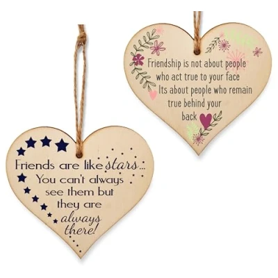 The Plum Penguin Heartfelt Friendship Set of Two Varied Design Hanging Hearts