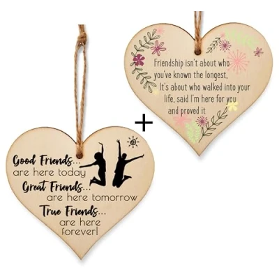 Set of 2 Handmade Heart Shaped Wooden Hanging Plaque Decorations The designs are unique and exclusive to the Plum Penguin. Hand illustrated and printed in full colour on the wooden hearts, to ensure a high quality durable finish. These make a great small gift for friends and family, and are a perfect alternative to a traditional greetings card. Size: 10 x 10 cm. Made from high quality sustainable 3mm Plywood (PEFC Certified) Includes a length of hessian twine for hanging. Each packaged in a transparent sleeve, these look smart and sleek to give as gifts. Fits neatly inside a card and envelope for posting.