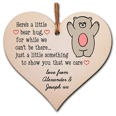 The Plum Penguin Personalised Handmade Wooden Hanging Heart Plaque Gift a little bear hug miss you long distance wall hanger for family friends grandparents