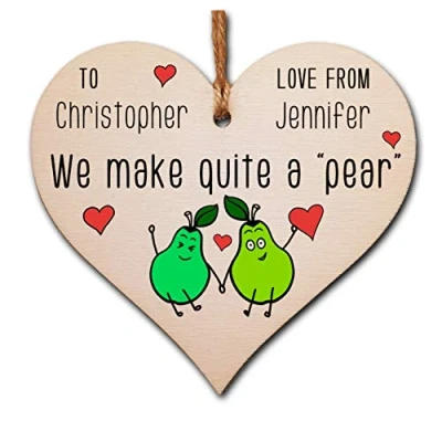 The Plum Penguin Personalised Handmade Wooden Hanging Heart Plaque Valentine's gift We Make Quite a Pear novelty for someone special boyfriend girlfriend husband wife funny romantic keepsake