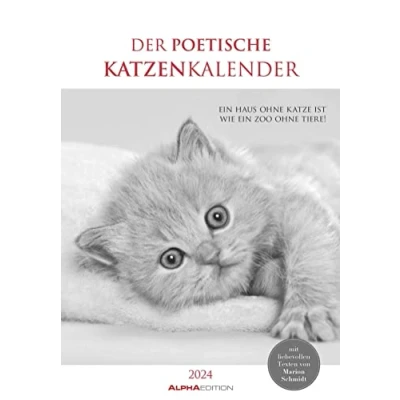 The Poetic Cat Calendar 2024 Picture 23.7 x 34 cm with Beautiful Quotes Black and White Wall Space for Notes Alpha Edition