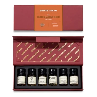DISCOVER NEW FAVOURITES: Drinks by the Dram brings you unique tasting sets that allow you to explore miniature drams of premium spirits so that you can find new favourites without buying a full bottle. BEST OF BOURBON: The good old U-S of A. Land of the free. Land of stonkingly good bourbons. Discover six of the very best right here with drams from producers all over America. SET CONTENTS: The Bourbon & American Whiskey tasting set includes six 3cl drams of Michter's US*1 Straight Rye, Angel's Envy,Willett 4 Year Old Family Estate Bottled Rye, Rowan's Creek Straight Kentucky Bourbon, St. George Baller Single Malt and Tennessee Bourbon 11 Year Old (That Boutique-y Whisky Company). THE PERFECT GIFT: Our tasting sets make for the ultimate gift for the spirit lovers in your life - from Christmas stocking stuffers to Father’s Day presents, Drinks by the Dram has you covered whatever the occasion. EXPLORE THE RANGE: Whether you’re a whisky connoisseur or are partial to spiced rums, we’ve got a set for everyone. There’s a tasting set to suit all tastes and different budgets so that you can experience more of what you love.