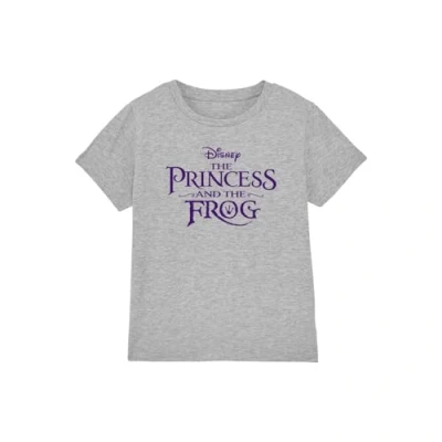 The Princess And Frog Logo Girls T Shirt, Athletic Heather, 9 10 Years