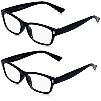 Two pairs of stylish reading glasses at a fantastic price! Mens / womens / unisex. Sturdy frame design with quality hinges. Dark blue finish. Strength +1.00.