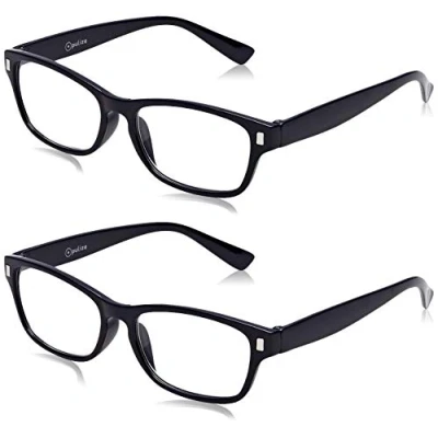 QUALITY & STYLE – Opulize Readers combine practical everyday functionality with a timeless, classic design. Designed for comfort and durability, this versatile style is suitable for daily wear and complements a wide range of looks A PAIR FOR EVERYWHERE - Are you always losing your glasses or are they never in the right place at the right time? Now with Opulize's incredible value frames you can have a pair in every room. COMFORT FIT – Opulize NET magnifying readers feature scratch-resistant clear lenses, a lightweight rectangular frame, and spring hinges for a comfy all-day fit. Flattering unisex eyewear for all face shapes. SMALL PRINT - Finding it harder to focus close up, at Opulize, we offer strengths +1 / +1.5 / +2.0 / +2.5 / +3.0 / +3.5 so you can find glasses just right for your eyes and your day-to-day needs. 2 Pack - Black