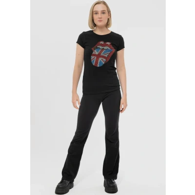 The Rolling Stones T Shirt Diamante Union Jack Official Womens Skinny Fit Black M