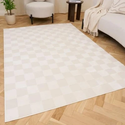 THE RUGS Living Room Rug, Loft Collection Modern Textured 14mm Soft Pile Area Carpet, Non Shedding & Easy Care [ Checkerboard Cream, 160x230 cm]