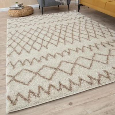 Moroccan-Inspired, Modern Appeal - Drawing inspiration from timeless Moroccan designs, our rugs feature eye-catching patterns that add geometric interest. This blend of traditional and contemporary elements ensures these rugs are a tasteful addition to any room in your home. Neutral Tones for Versatile Styling - Our rugs come in a selection of neutral shades, from warm creams to versatile grays. This makes it easy for you to integrate them into your existing decor, whether your style leans towards vibrant colors or more muted tones. Walk on a Cloud of Comfort - Step onto these soft and durable living room rugs and feel the difference. Offering both large and smaller size options, each rug is designed to be long-lasting while creating a relaxing and cosy atmosphere, suitable for rooms big and small. Low-Effort, High-Reward Maintenance - Made from quality materials, our rugs are easy to care for. A quick go-over with your vacuum cleaner is usually all it takes to keep them looking fresh, ensuring your living space remains welcoming with minimal effort. Wide Range for All Home Sizes and Shapes - Finding the perfect rug for your space has never been easier. Our collection spans a variety of dimensions to suit all home sizes, available in rectangular, square and round options. With sizes ranging from large 200x290 rugs to compact 160x230 or even 120x170 options, there's a rug that will complement your space, balancing both practicality and style.