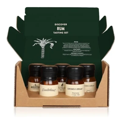 DISCOVER NEW FAVOURITES: Drinks by the Dram brings you unique tasting sets that allow you to explore miniature drams of premium spirits so that you can find new favourites without buying a full bottle. FOR RUM LOVERS: Did you know that there is so much more to Rum than just the nautical names that might spring to mind? Loads of producers are churning out craft rum that is magic on it’s own or mixed - this set brings you five of the best to try. SET CONTENTS: The Rum discovery set includes five 3cl drams of Planteray 5 Year Old Barbados, Pusser's Blue Label, Angostura 7 Year Old, Dunderhead Rum and El Dorado 8 Year Old. ECO-FRIENDLY PACKAGING: Your discovery set arrives in a plain, transit-ready box (with all artwork and information inside) to reduce waste and keep shipping sustainable - simple on the outside, impressive on the inside. EXPLORE THE RANGE: Whether you’re a whisky connoisseur or are partial to spiced rums, we’ve got a set for everyone. There’s a tasting set to suit all tastes and different budgets so that you can experience more of what you love.