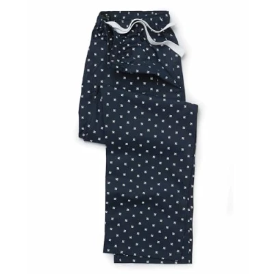 Elevate your downtime with our navy fleur-de-lys print pyjama bottoms, crafted from pure cotton poplin for a cool, smooth feel against the skin. Crafted from 100% pure cotton poplin, they’re unbelievably soft, smooth and breathable, keeping you cool and comfortable whether you're lounging around or winding down for the night The fully elasticated waistband, finished with a contrast herringbone drawstring, ensures a flexible, comfortable fit, while the buttoned working fly adds a touch of everyday practicality A single back pocket, embroidered with our signature logo, completes the design Presented in fully recyclable packaging
