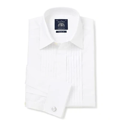 THE SAVILE ROW COMPANY LONDON Men's Classic Fit Pleated Front White Evening Dress Shirt Double Cuff 18.5" Collar Standard
