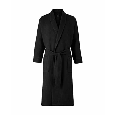 THE SAVILE ROW COMPANY LONDON Men's Lightweight Soft Cotton Waffle Kimono Bathrobe Dressing Gown Black Small