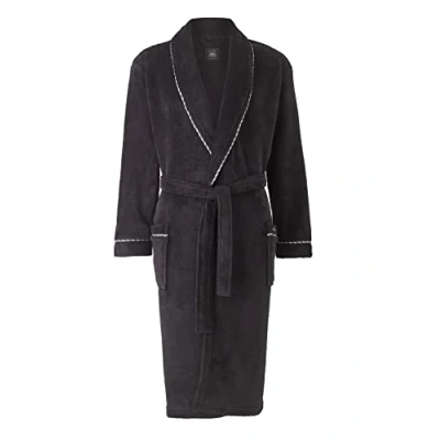 THE SAVILE ROW COMPANY LONDON Men's Lightweight Super Soft Warm Fleece Bath Robe Dressing Gown Black Rope Edge Plain XX Large