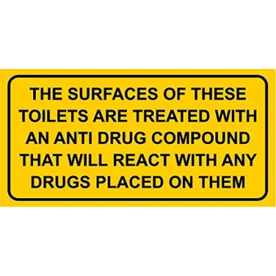 The surface of these toilets are treated with a compound that detects drug Safety signs 1.2mm Rigid plastic 300mm x 200mm Digitally printed for extra durability Drill and screw in position or use double sided tape to mount onto suitable surface.