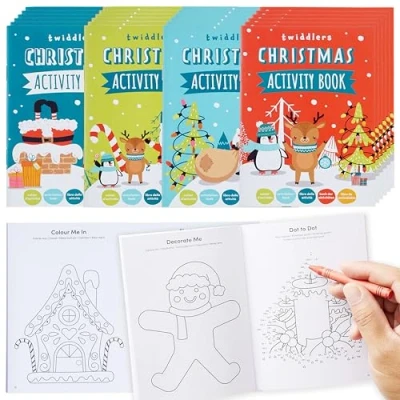THE TWIDDLERS 24 Mini Christmas Activity Books, A6 Paper Size Including Colouring, Puzzles and Games, Suitable for Stocking Fillers Classroom Prizes
