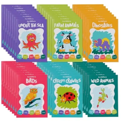 Assorted Fun Designs: Our children's colouring book pack features six unique themes that offer engaging learning and fun for kids. With themes like 'Birds,' 'Creepy Crawlies,' 'Wild Animals,' 'Dinosaurs,' 'Under the Sea,' and 'Farm Animals'. Educational & Engaging: Our 48 animal colouring books are an excellent tool for learning and skill-building. They help children develop essential skills like colour recognition, patience, and concentration, making it a fun way to learn while colouring. Perfect Party Bag Books: Our children's colouring books are sized conveniently for on-the-go use. The mini books measure 15x11x5cm, making these small colouring books for children perfect for travel, and great mini colouring book party bag fillers. Helps Kids Relax: Our mini colouring books for party bags provide a calming and therapeutic experience for children. After a long day of stimulation, colouring can help kids relax and unwind, promoting better sleep and overall well-being. Great Value Bulk Colouring Books: Our children's colouring book pack is an excellent investment in your child's education and entertainment. With 6 unique themes, each containing dozens of pages to colour, your child will enjoy hours of fun.