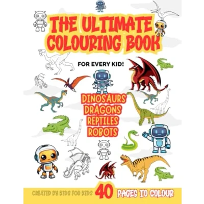 The Ultimate Colouring Book For All Children: Dinosaurs, Dragons, Reptiles and Robots. Ages 4 +: Big Simple Illustrations