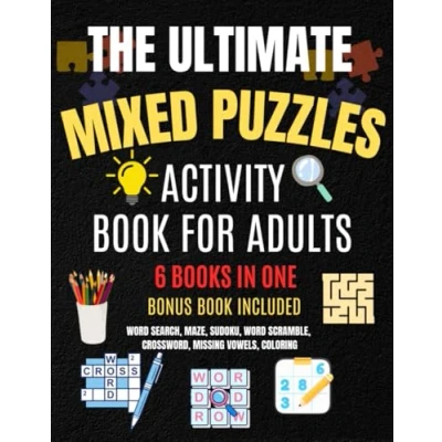 The Ultimate Mixed Puzzle Activity Book for Adults: 6 Books In 1 Collection: 2000+ Brain Games Including Word Search, Sudoku, Crossword, Maze, Scramble And Missing Vowels