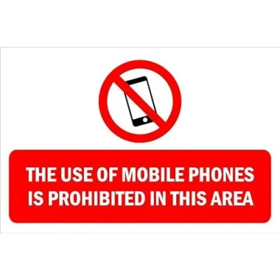 The use of mobile phones is prohibited in this area sign. 1mm flexible Plastic sign. Digitally printed for extra durability. Drill and screw in position or use double sided tape to mount onto suitable surface. All signs come with a 5-year warranty. All our signs are UV resistant meaning they will not fade in sunlight. Suitable for indoor & outdoor use.