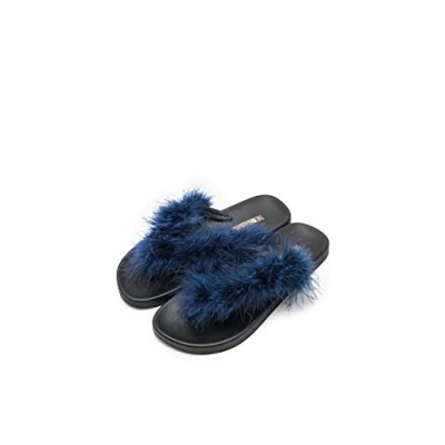 The White Brand Women's Feather Flip Flops, Blue (Navy Navy), 5 UK
