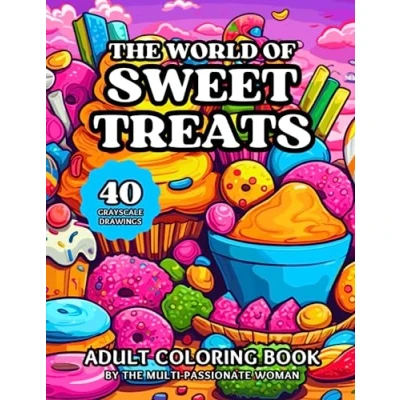 The World of Sweet Treats Adult Coloring Book: 40 Single Sided High Quality Grayscale Designs, Intricate Dessert Patterns