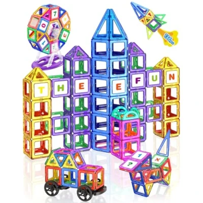 【136pcs Magnetic Building Blocks】Magnetic tiles toys for 3 4 5 6 7 8 year old boys girls set include 42 castle cards, 30 squares, 26 triangles, 8 Ferris wheel fittings, 6 long triangles, 2 trapezoid, 2 hexagons, 2 rectangles, 2 pentagons, 6 sectors, 4 diamonds, 6 car wheels, 1 stick paper, and 1 instruction booklet. Designed for kids with big imaginations, gifts for 3 4 5 6 7 year olds. 【Certified High Quality】The magnetic tile is made from smooth, high-quality, and non-toxic ABS plastic. Round edge design without sharpness, no worry about hurting your kid's little hands. Suitable toy for 3 4 5 6 7 8 Year Old Boys Girls. 【Strong Magnetism】The magnetic building blocks toys for kids contain larger magnet blocks with stronger magnetism.The powerful magnetic design makes the magnet building blocks magnetic tiles easy for children to build whatever they think of and won't easily collapse. 【Gift Toys for 3 Year Old】magnetic building blocks toys for kids are suitable for all ages (3+ and up). A great way to spend quality time with the family and love ones. Best magnetic building blocks toys for 3 4 5 6 7 8 year old boys girls. 【STEM Educational Toy】The magnetic building blocks toys for kids are exceptional for child-development. Kids can create kinds of 2d plane shapes or 3d geometric structures. Kids will boost their intelligence, coordination, and problem solving skills as they play!, Manufacturer: Theefun