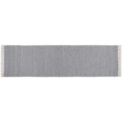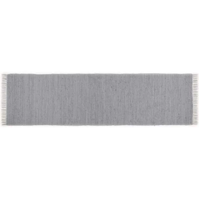 Grey rug made from 100% cotton The rugs are elaborately hand-made The pile height of the rug is 5 mm The rug is machine washable up to 30 °C Carpet shape: rectangular 70 x 250 cm