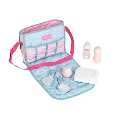 Princess Corlie Nappy-changing bag of the of Theo Klein Supplied with the following accessories: Nappy-changing bag with drinking bottle, comp, mirror, cream tin, powder tin and nappy The Princess Coralie nappy-changing bag is including adjustable shoulder straps, Manufacturer: Theo Klein