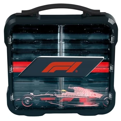 The F1 collectible case from Theo Klein is a stylish storage solution for young motorsport fans and their racing car collection The case holds up to 36 cars in 1:64 scale and features transparent doors as well as a Formula 1 poster The illuminated Formula 1 logo makes the collectible case a true highlight in any child’s room This interactive motor skills toy promotes a sense of order, collecting passion, imagination, and enthusiasm for motorsport Dimensions: 40 cm x 9 cm x 43 cm | Toy for children aged 3 and up | Required batteries: 2x R03-AAA - not included, Manufacturer: Theo Klein