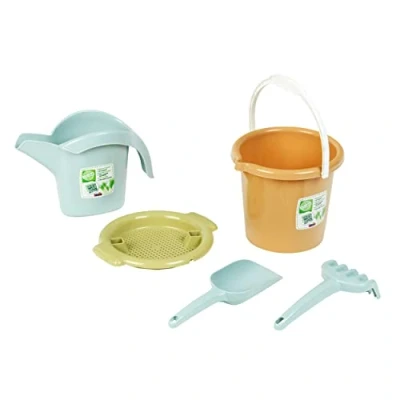 The sand bucket set from the organic line by Theo Klein with which sand castles are built for sustainable fun With bucket, watering can, hand rake, shovel and sieve, they are perfect for building castles and trenches The sand bucket set is made from organic plastic, which is obtained from sugar cane bagasses Experiment with sand and water, redesign sandpit landscapes, building castles or dams, trains children's motor skills, imagination and creativity Made in Germany. Suitable for children from 18 months, Manufacturer: Theo Klein