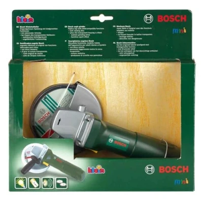 The toy angle grinder is a child-friendly exact replica of an original Bosch design The disc of this toy tool turns in a way that is harmless, just for fun, and is battery-powered When you press down on the transparent housing, you hear sanding sounds and a light module creates the illusion of sparks The angle grinder allows little do-it-yourself experts to emulate the grown-ups in their role play games and they also develop their imagination and motor skills Dimensions: 25 cm x 8 cm x 17 cm I Suitable for children aged 3 years and up I Batteries required: 3 x R6-AA – not supplied with the product