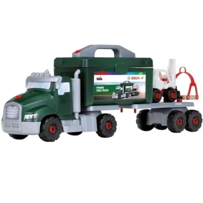 Theo Klein 8626 Bosch screw truck play set with torque screwdriver I construction Toys tools, forklift and crane Dimensions: 70 cm x 13.83 22.25 for children aged 3 over