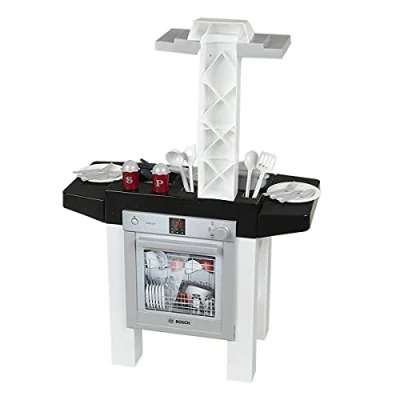 With this chic children's kitchen in the popular Bosch design, little connoisseurs can fry everything their heart and imagination desires in their own oven and try out all the kitchen appliances that are in the real kitchens of mum and dad The hard-working nursery cooks have everything they need: Cooking and eating utensils such as pots, plates, cutlery and even a coffee machine that can "cook" delicious coffee for dessert In addition to the many loving details such as the dishwasher and extractor hood, the children's play kitchen also has a hob with realistic cooking sounds so that you feel like you are in a real kitchen while playing Stirring in the pot, turning delicacies in the pan and salting, placing everything on plates and serving, is not only fun, it also trains motor skills and creativity Dimensions: 31 cm x 60 cm x 885 cm I Suitable for children aged 3 and over I Batteries required: 2 x R 03-AAA ' not supplied, Manufacturer: Theo Klein