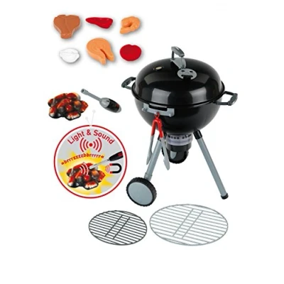 With this charcoal grill in the popular Weber design, little barbecue experts will be in their element The toy kettle barbecue comes with a charcoal grate and barbecue tongs, as well as barbecue food such as salmon, T-bone steak and vegetables The little pile of charcoal is especially appealing ' its sound and light effects are activated by the magnetic head of the lighter Children love copying their parents. In doing so, they learn a lot about food and having fun at parties and by handling the cooking grate, the tongs and the barbecue food they also develop their fine motor skills Dimensions: 40 cm x 32 cm x 53 cm I Suitable for children aged 3 years and up I Batteries required: 3 x R03-AAA ' not supplied with the product, Manufacturer: Theo Klein
