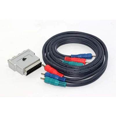 3 Way 1.5m Flat Nickel Plated Professional RCA Audio Video Connection Cable & In / Out Scart Adaptor Analogue Adaptor Kit - Allows Connection Of Older Scart Equipment to New Televisions Composite Video and left / Right Audio Channels Connect Through the 3 Way RCA / Phono Cable Ideal For Connecting VCR, DVD, Satellite to the Analogue Port on Most Modern Flat Panel Televisions Your TV Must have an Analogue AV Input. Normally Yellow, Red and White RCA Sockets Labelled AV