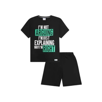 ThePyjamaFactory Boys I'm Not Arguing Just Explaining Why Right Short Cotton Pyjamas (13 Years) Black