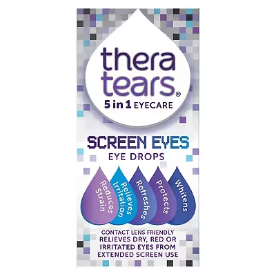 TheraTears Screen Eyes Eye Drops Relieves, Refreshes and Whitens Dry, Red or Irritated from Extended Use Contact Lens Friendly 5 in 1 Care 10ml