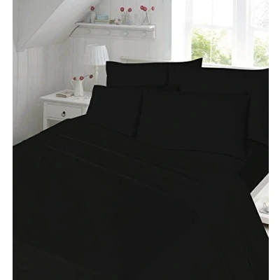 Thermal Flannelette Brushed Cotton Fitted Sheet Plain Bedding (Black, Double Sheet)