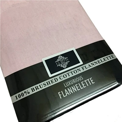 Thermal Flannelette Brushed Cotton Fitted Sheet Plain Bedding (Pink, Double Sheet)