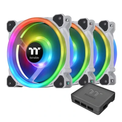 Thermaltake Riing Trio 12 RGB White TT Premium Edition 3 Pack, 120mm, Independent 16.8 Million Color LED Ring Design, Featuring 30 addressable LEDs, Case/Radiator Fan, CL F126 PL12SW A