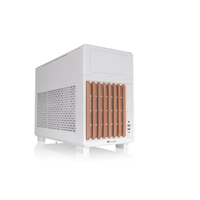 Thermaltake TR200 WS Micro ATX Case with Wooden Front Panel USB 3.2 Gen 2 Type C and x 3.0 Pre installed 120 mm Rear Fan Compatible AIO 6 Inch LCD Kit White