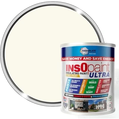 Thermilate InsOpaint ULTRA INSULATION Paint Advance Energy Saving Keep Room Warm 5L Tough Acrylic Emulsion Wall Ceiling (Creamy White, 5 Liters)