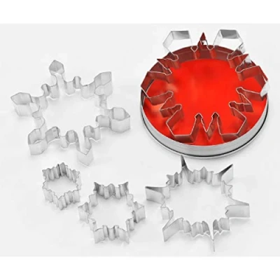 Thermohauser 8300032079 Cookie Cutter Set (Stainless Steel) Snowflake Edge Smooth 5 Pieces Diameter 4.9 14.9cm, Packed in a tin Storage