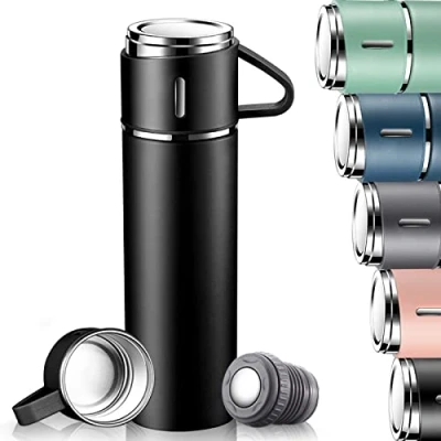Safe material: thermal cups are made of high-quality 304 stainless steel, robust and durable, anti-oxidant, corrosion resistance, no smell, you can drink safely with our water bottles. The insulated bottle with practical screw cap does not have a breakage sensitive glass insert, it is therefore ideal for outdoor use. Keep heat and cold: stainless steel drinking bottle ensures that your drink stays super cool and refreshing for up to 12 hours or stays hot and warm for up to 12 hours. Perfect for hot or cold weather. This excellent insulation, regardless of the temperature of the liquid in this thermos bottle, it will never sweat or get hot. Leak-proof and non-slip: double lid closures of the thermos bottles and silicone rubbers ensure that no leaks, even if the water bottle is tipped over or shaken. so you can put it in your backpack. In addition, the bottle base is equipped with a non-slip silicone base that can prevent slipping. Multi-purpose: 500 ml thermos flask is ideal for storing all drinks: water, tea or coffee, milk etc. And we have added a practical and creative lid design to the stainless steel bottle. It is not only a cup lid, but also a tea cup. Sports drinking bottles with carry handle very suitable for everyday use and can be taken with you. Environmentally friendly and gift: this thermos flask baby on the go BPA-free is recyclable and reusable, use it instead of disposable plastic bottles, so you protect nature in the long term. For home, work, sports, camping, travelling. Thermal bottles have been carefully sprayed with matte powder, which is fashionable and timeless, is the best gift for children, women and men.