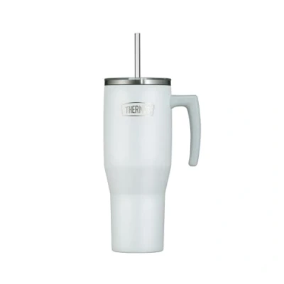 Thermos Refreshing Series Insulated Drinking Cup 1.1 L Matte White Tumbler with Straw and Handle for Travel, Work or Home, Tasteless Double Walled Stainless Steel