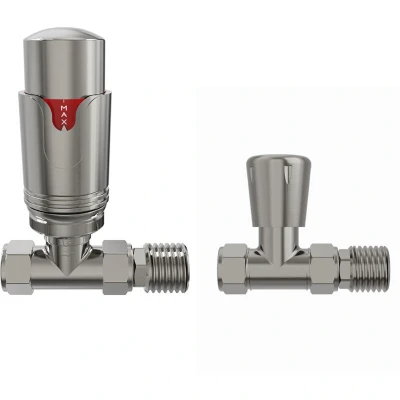 Thermostatic trv Manual Radiator Valves Straight Satin Nickel Pair NRG