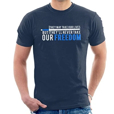 They May Take Our Lives Freedom Braveheart Men's T Shirt Navy Blue