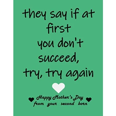 they say if at first you don't succeed, try, try again. happy mother's day from your second born: journal son or daughter funny mothers card gift (mother's gift)